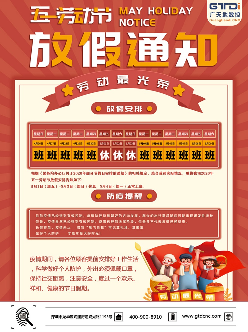 特此通知!敬請您根據需要,提前安排好機器采購及售后等事宜。假日期間,本公司正常接單,在此期間給您帶來不便,敬請諒解!