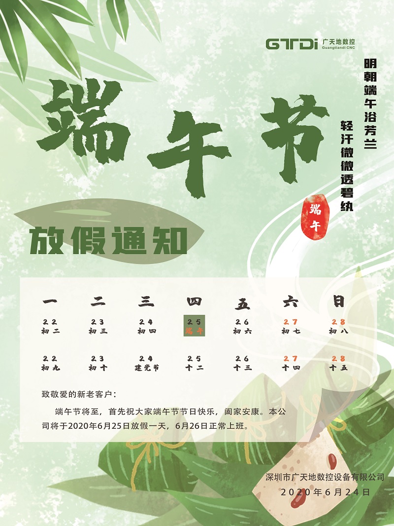 廣天地?cái)?shù)控2020年端午節(jié)放假時(shí)間通知