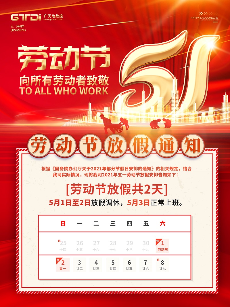 根據《國務院辦公廳關于2021年部分節假日安排的通知》的相關規定,結合我司實際情況,現將我司2021年五一勞動節放假安排告知如下:
