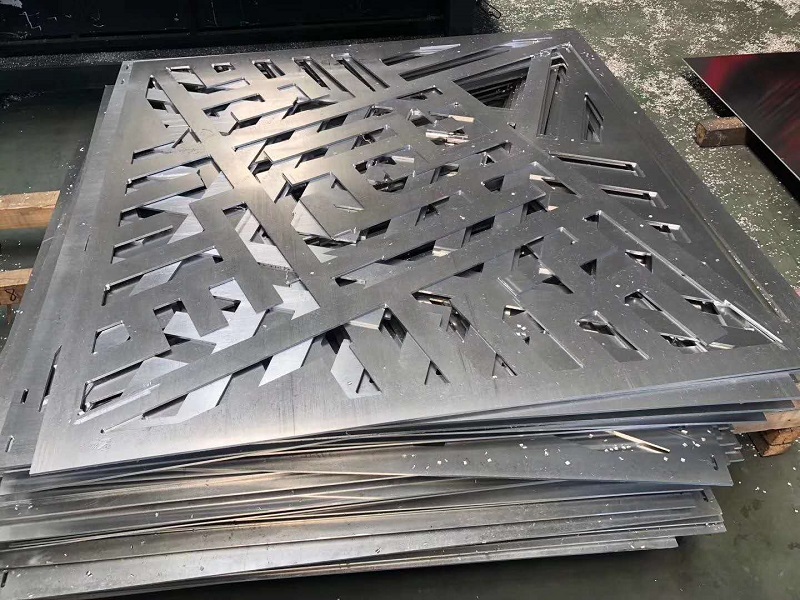 鋁單板加工程序:開料(沖孔,雕刻),開角,畫線,折彎,滾弧,焊接,打磨,拋光,組裝,前處理,噴涂,包裝。用于隔斷或幕墻造型的雕花鋁單板一般使用2.0mm/.5mm/3.0mm及以上的厚度的鋁板為原材料,這樣就能很好的保證雕花板板面的平整度。對于裝飾類的雕花幕墻及吊頂,可選用較薄的材料如1.0mm / 1.2mm/ 1.5mm 的材料。常規鋁單板雕刻機的雕刻刀較小為8mm,故在設計圖案時圖案間隙較小一般不得小于10mm。
